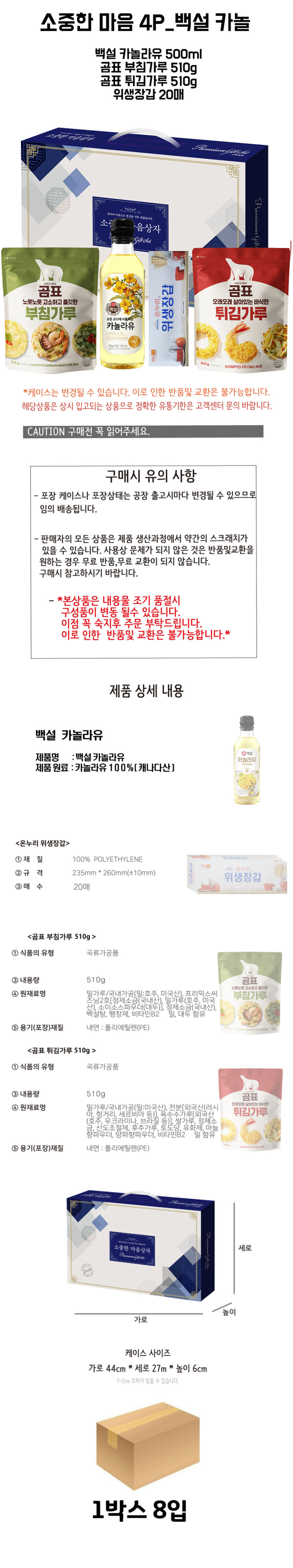 ¹é¼³ Ä«³î¶óÀ¯ 500ml + °õÇ¥ ºÎħ°¡·ç 510g + °õÇ¥ Æ¢±è°¡·ç 510g + À§»ýÀå°© 20¸Å